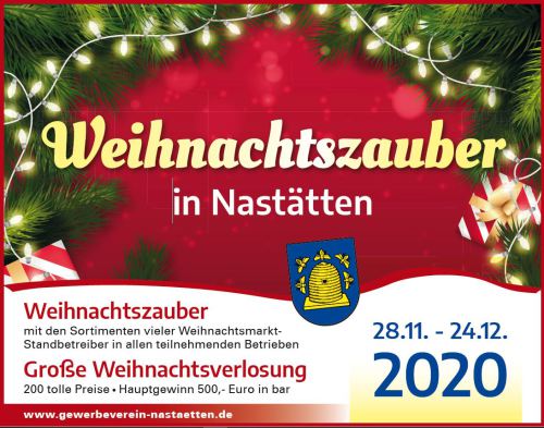 In der Adventszeit gibt es in Nastätten dieses Jahr einen Pop-Up- Weihnachtsmarkt, da aufgrund der aktuellen Bestimmungen keine Weihnachtsstraße stattfinden kann.