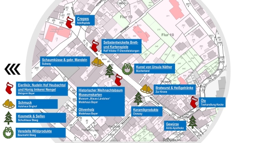 Zusätzlich stehen in der Römerstraße Hütten, in denen zu bestimmten Zeiten ebenfalls weihnachtliche Produkte angeboten werden.
